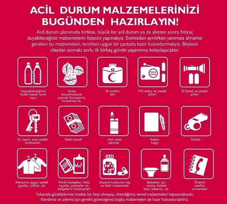 DEPREM ÇANTASINDA OLMASI GEREKEN MALZEMELER